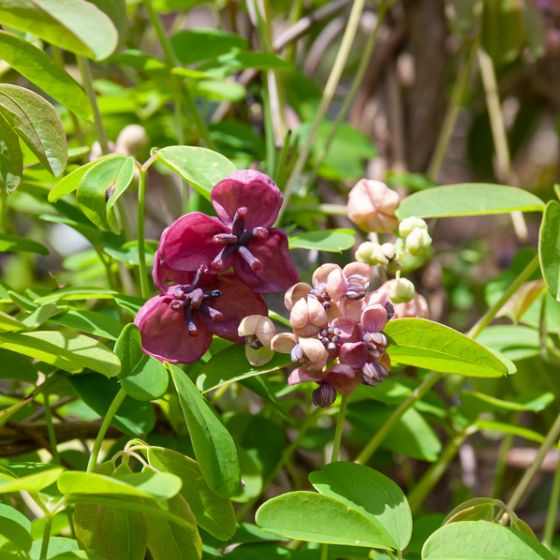 L’akébia quinata, également nommée “Akebie”, nécéssite un autre plan à proximité pour la pollinisation.