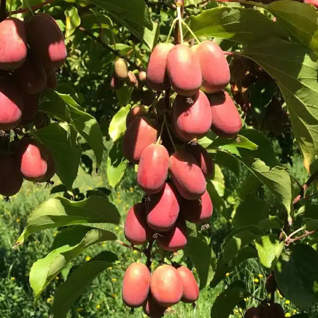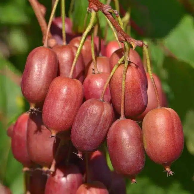 Le Kiwaï Scarlet September (Actinidia arguta Scarlet September ‘Mirzan’) est une variété remarquable de kiwaï, sélectionnée pour ses fruits rouges sucrés et sa robustesse.